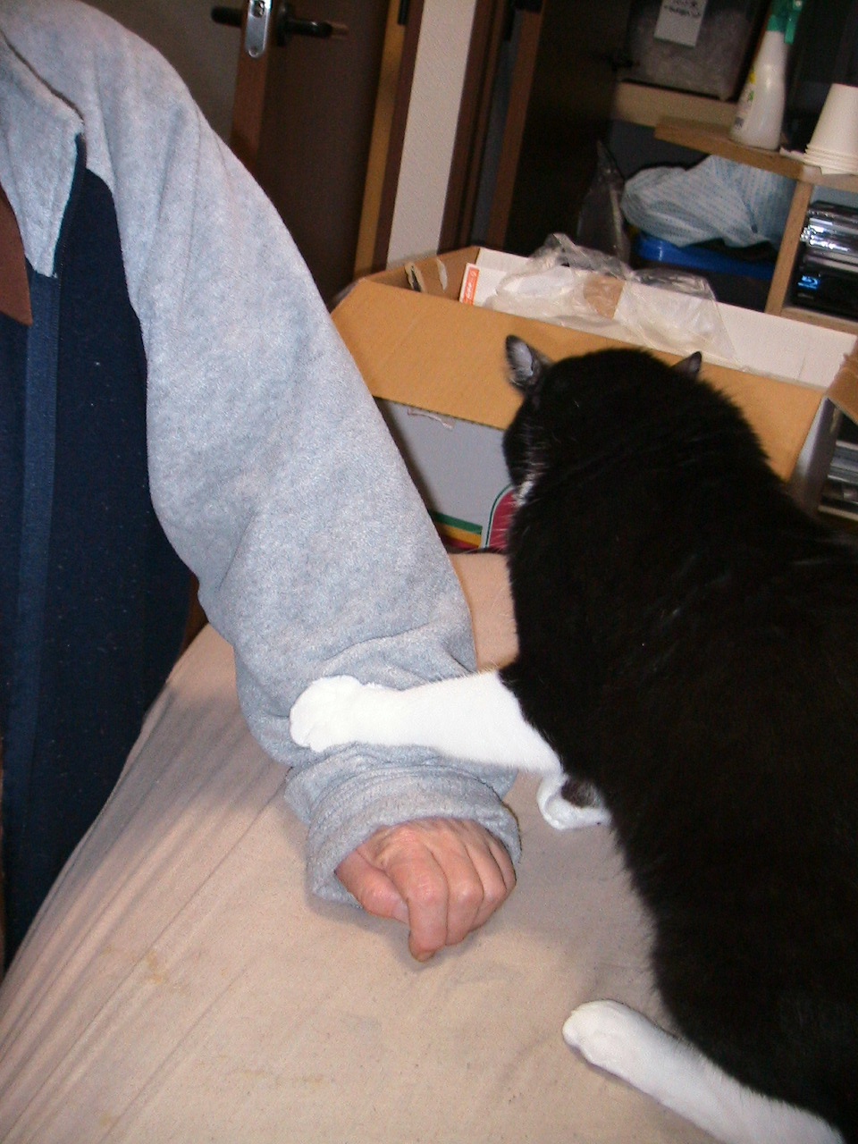 昨日の病院での爪切り、ワシが暴れたせいで前足1本不完全な切り様で「二」が切ろうとするがワシと戦争。