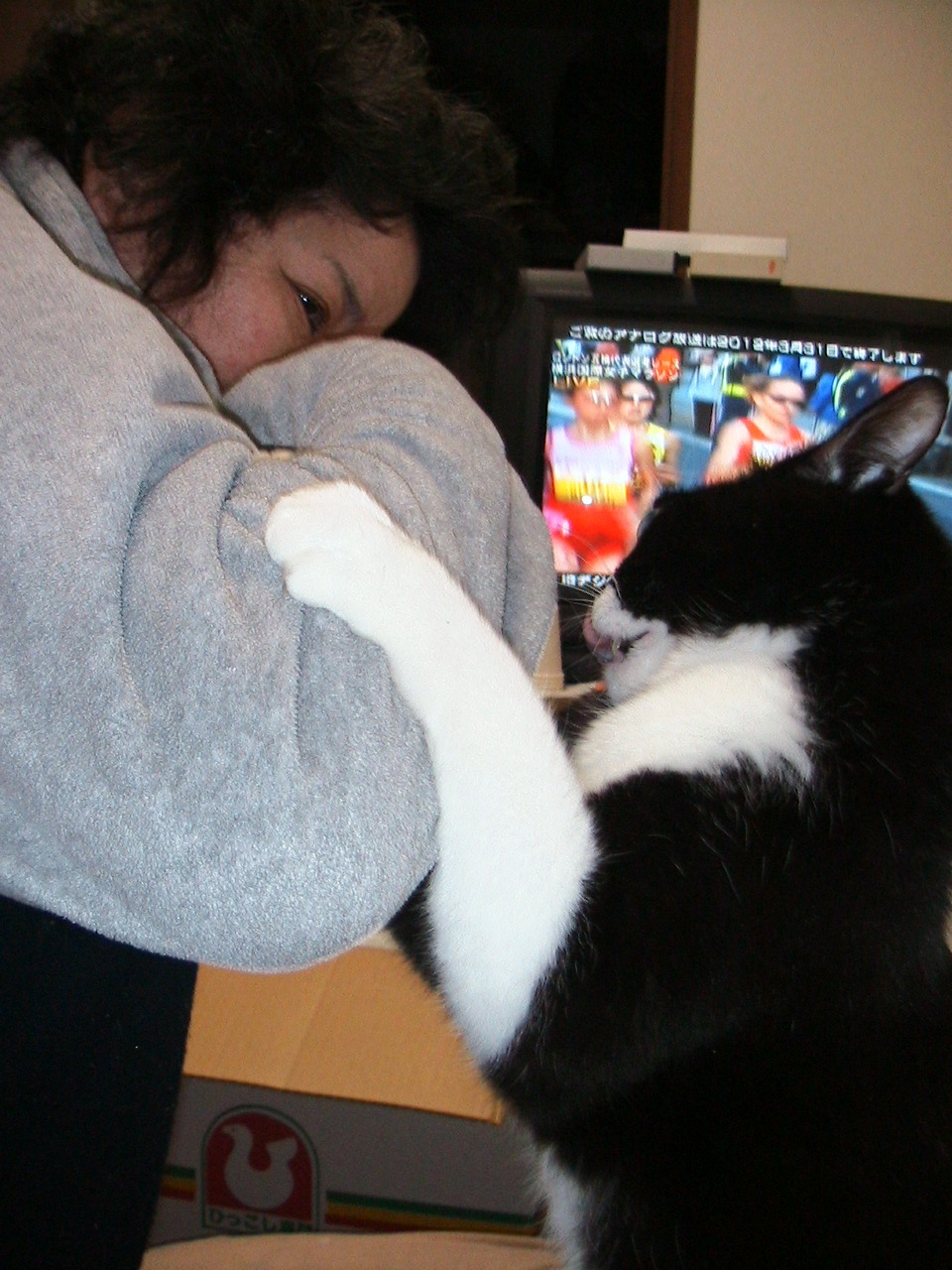 「一」の肩車から降りる時、爪が引っかかり降り難い。