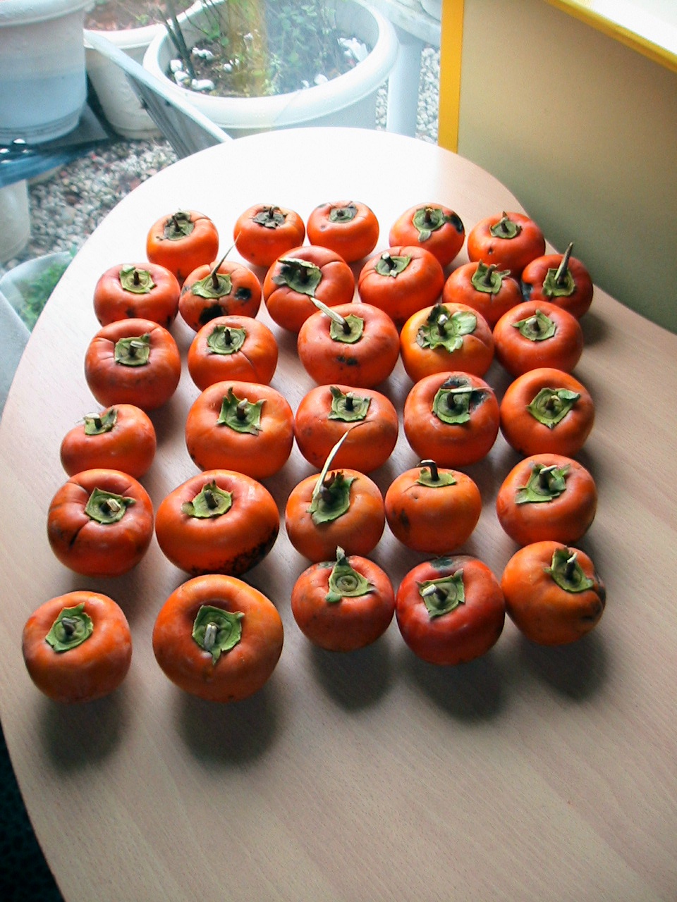 甘柿、写真に写っているので80ヶ~100ヶ位、こんな枝が4、5本。