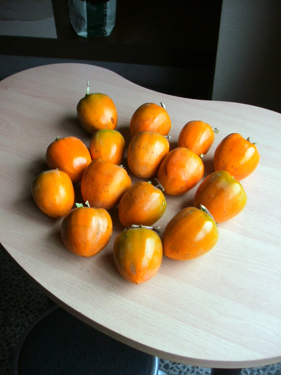 「一」はほど良く色付いた「はちや柿」を捥ぎ、干し柿作り第一弾。