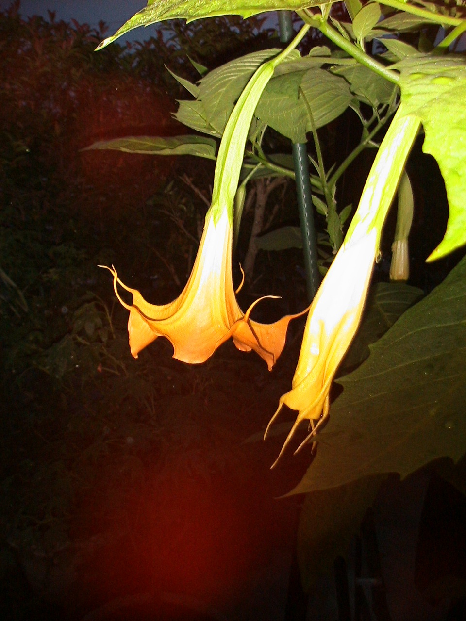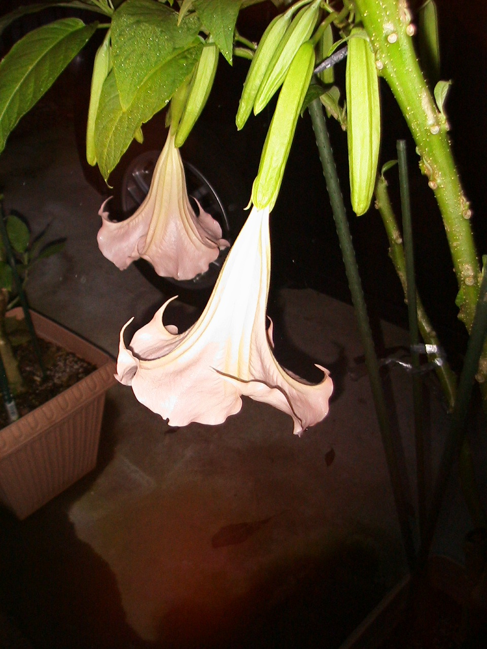 強烈な匂い、黄色とピンクの2色「エンジェルタランペット」。