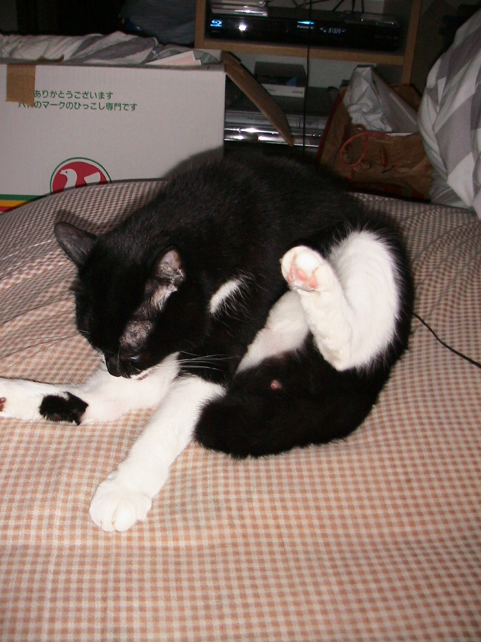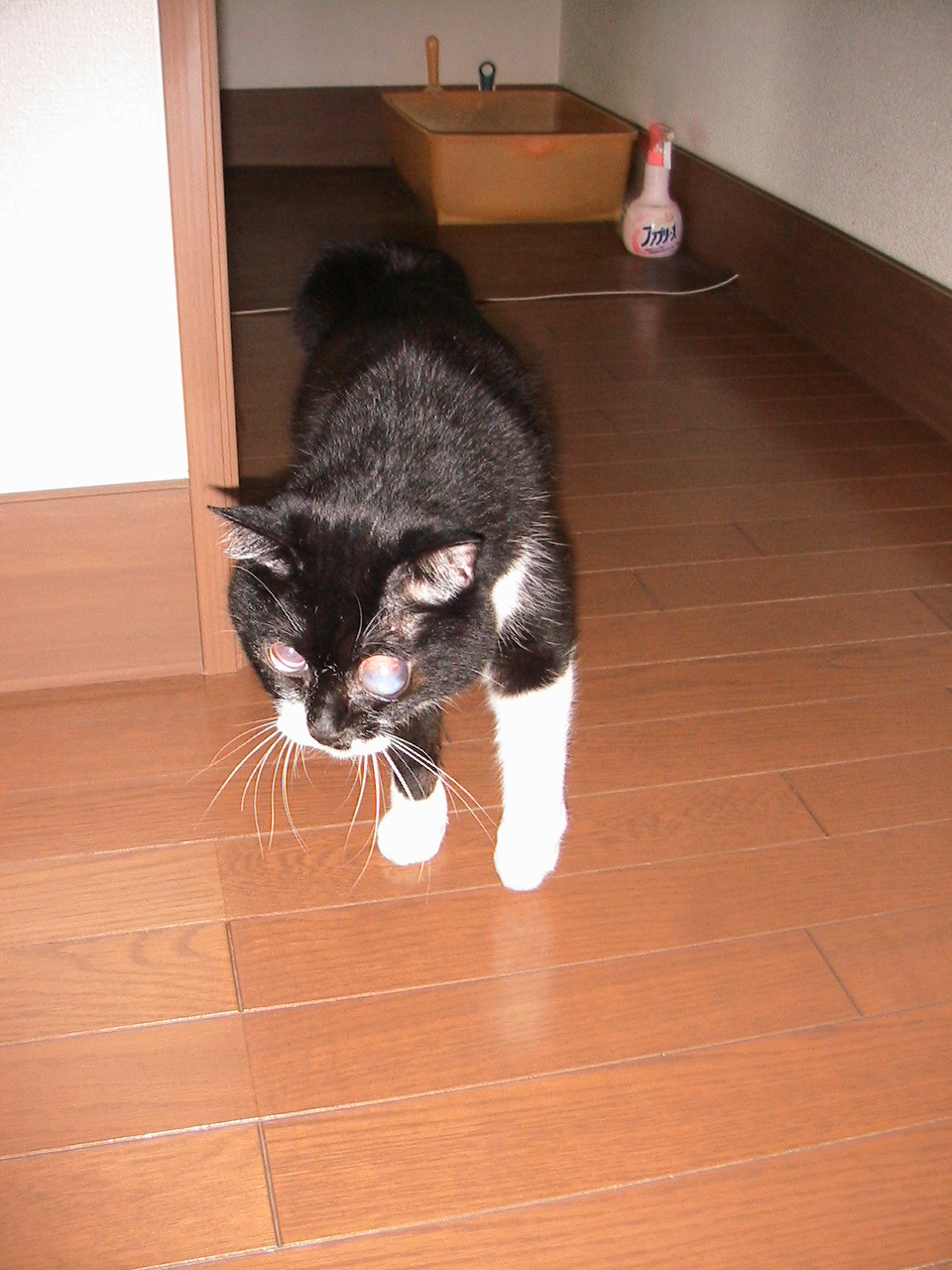 IMG_6090.JPG吾輩の目覚めは6時半、「一」の部屋のドアノブを押し開ける。