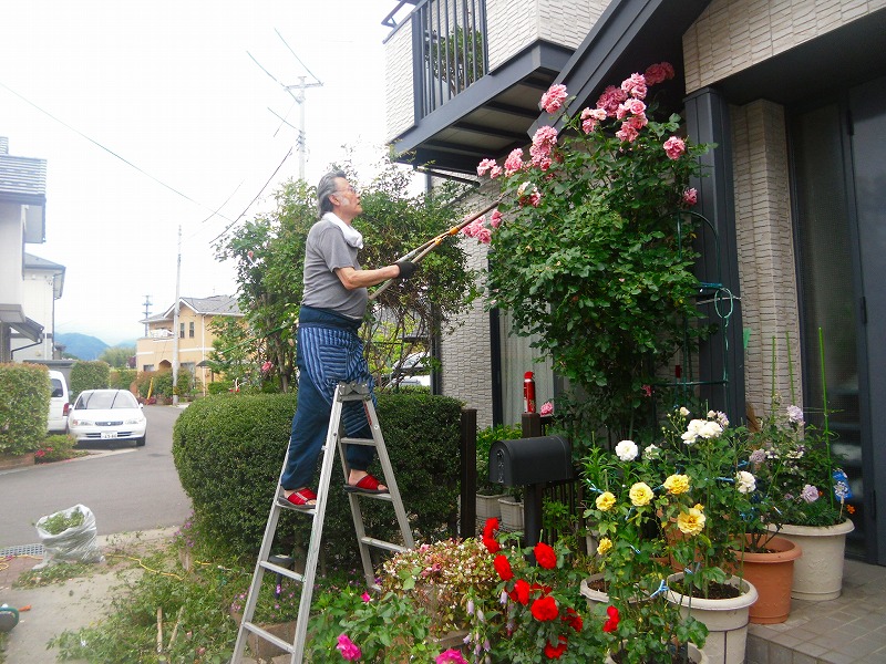 バアサンバラの花伐り、届かぬ所は「一」がデカ脚立で。