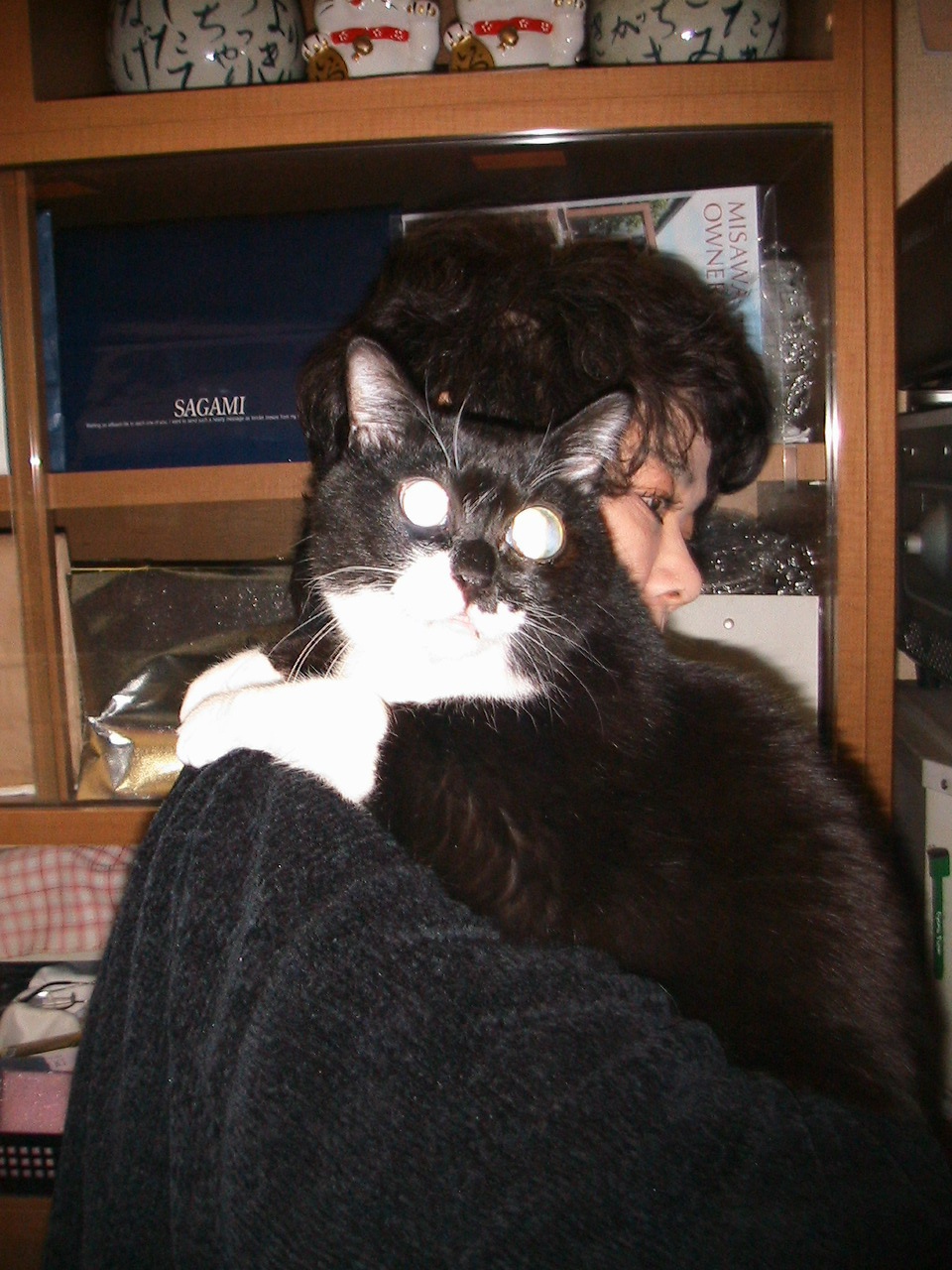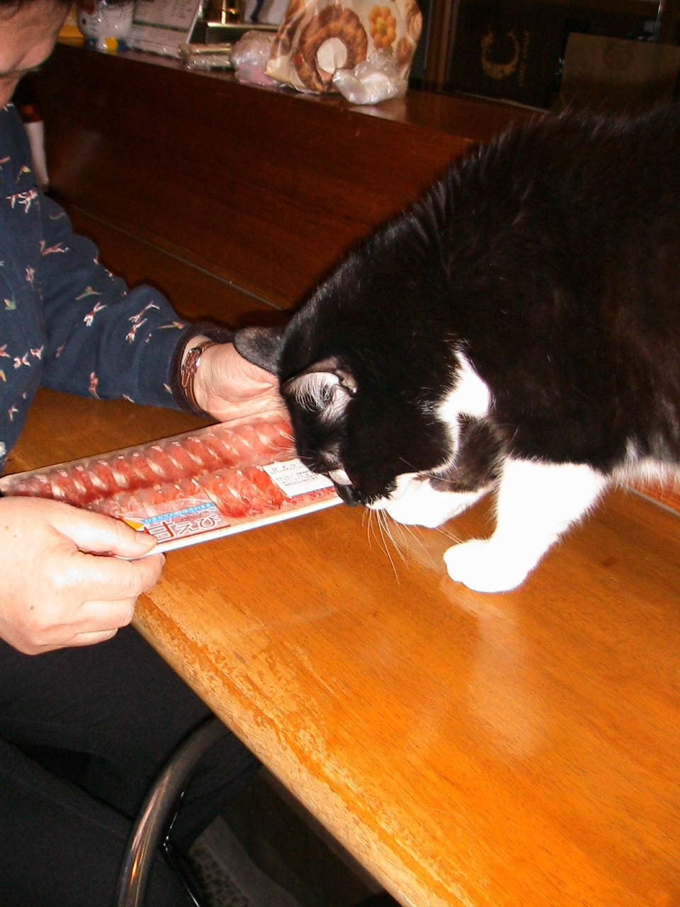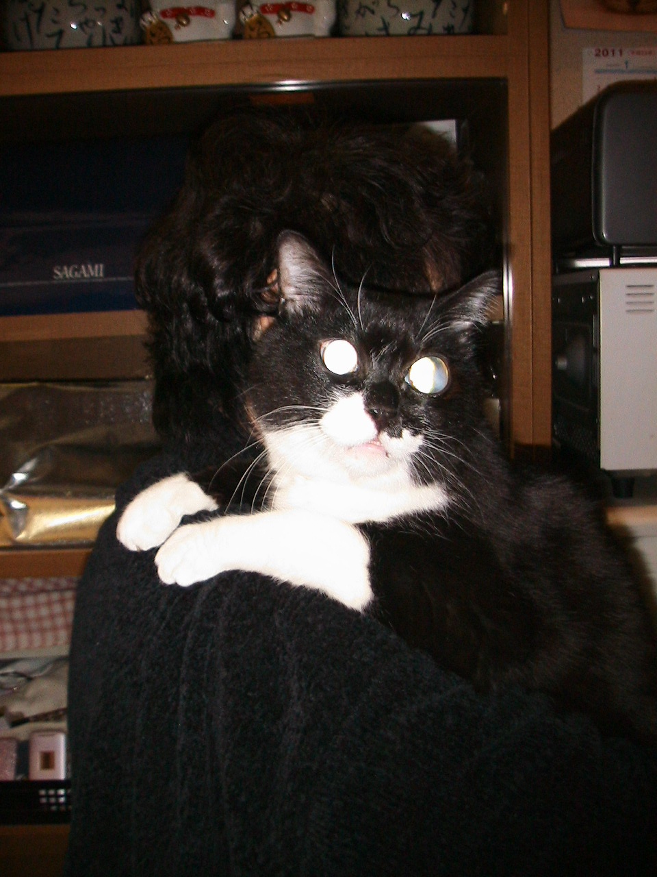 暫らく「一」の膝上で背中撫ぜをさせる。