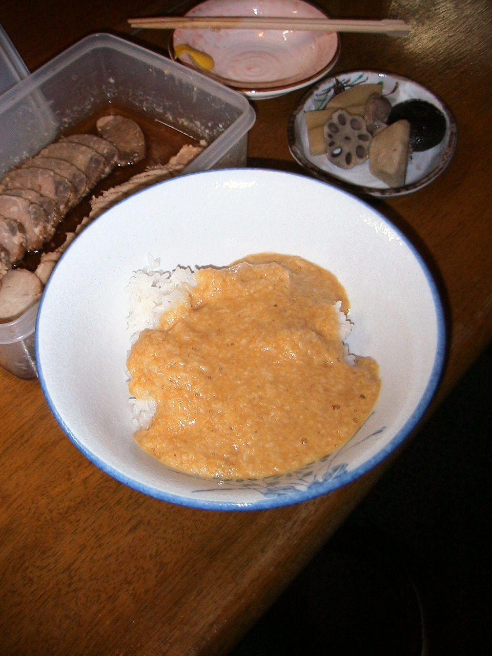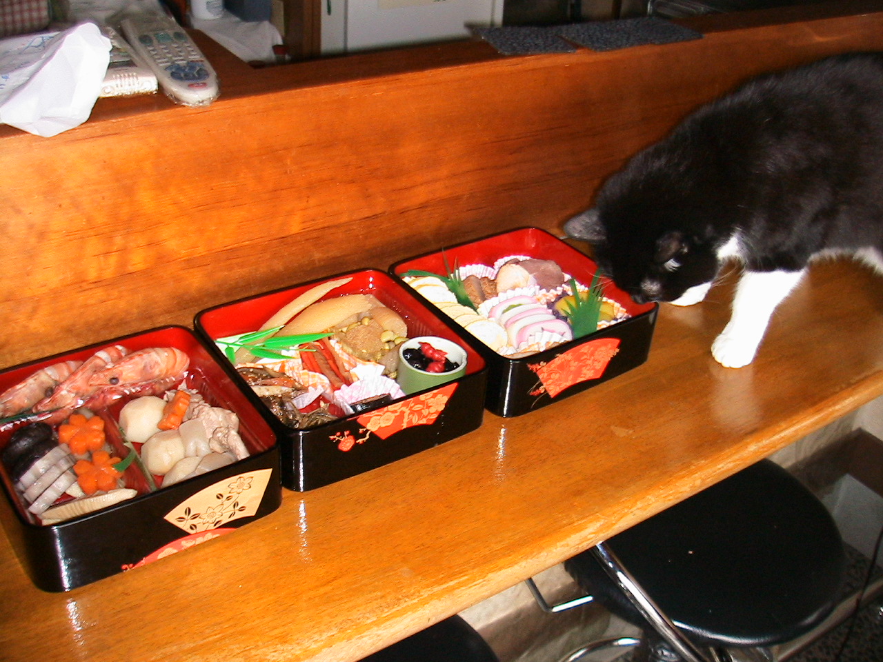 バアサン留守の為、家臣二人で朝飯。自家製オセチ。