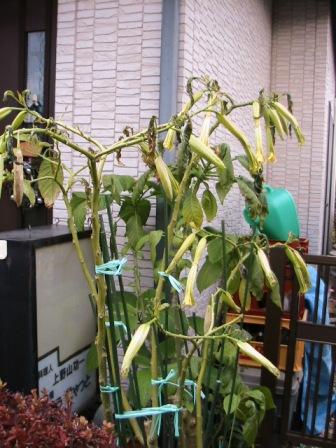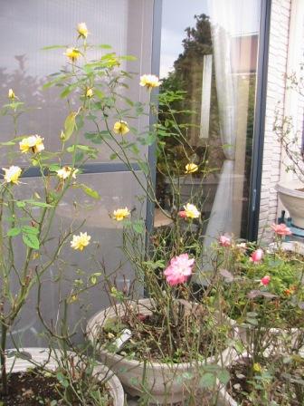 曇り予報がお日様出たので家臣「二」庭の鉢類手入れ後霜に弱い植木類を2Fに運ぶ。