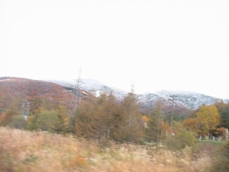 「土湯峠」では「アラレ」に降られたらしいが、紅葉も見頃で、その木々の上に降った雪が積もった壮大な景色を満喫した様だ。降雪は例年より一週間早いらしい。