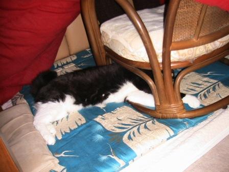 膝の上に上がったワシを見て「一」はかなりヤセタと心配顔。
