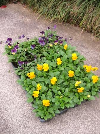 「二」は昨日2色50ポット買ってきた「ビオラ」、半分をK氏にあげた残25ポットを鉢に植え替え。