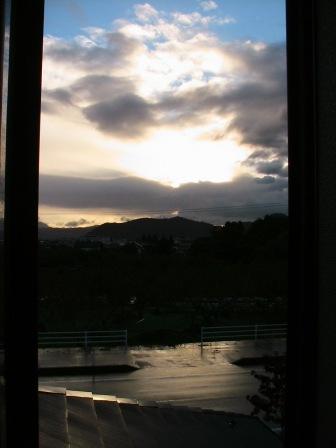 台風14号直撃は避けたようだが風雨強し。
