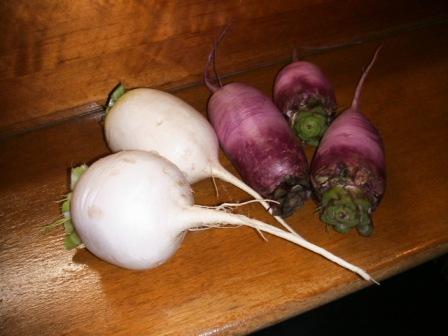 N氏が「聖護院大根」「辛味大根」を届けてくれる。