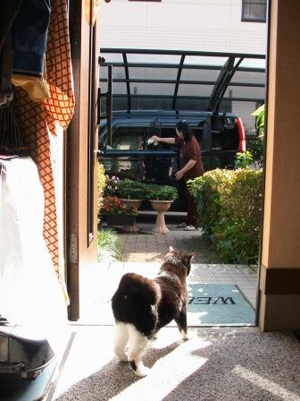 昼「二」は初めて洗車。それを店舗入り口から「しっかり洗えよ!」と見つめる我輩。