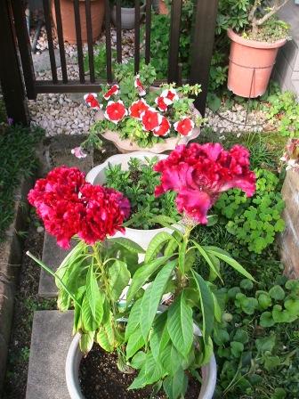右・「ケイトウ」が見事な色。