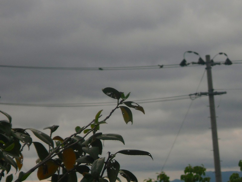100メートル先の電柱に「カッコウ」が2羽。愛の交渉決裂か近寄らずに飛び去る。