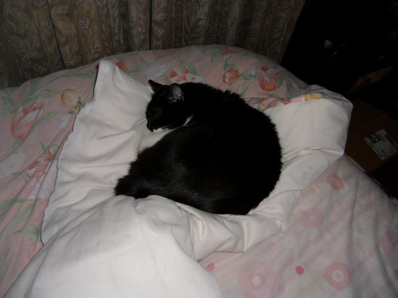 日課後、オヒサマ照るも心地よい風も有り「二」のベッドで爆睡。