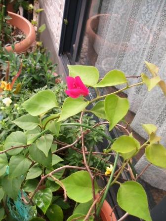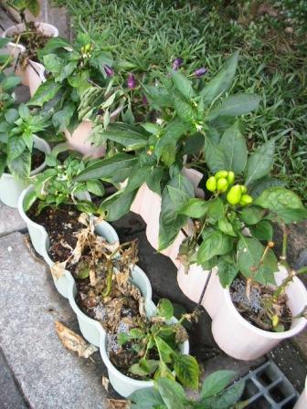 夏の花「七色トウガラシ」が枯れかけて「一」慌てて散水。