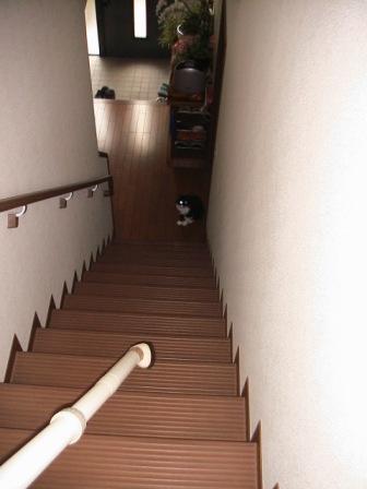 階段下から恨めしく見上げるワシ。左。