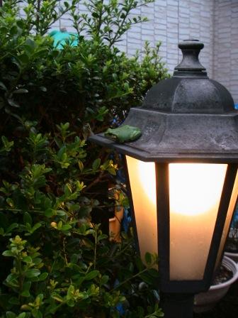 植木・花々には勿論、写真の如く、外灯・ガラス戸にもへばり付いている。