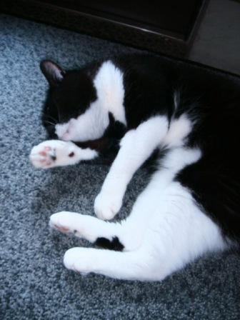 「家臣一」は眠そう。何時もより遅いのだからどーしたんだ?。