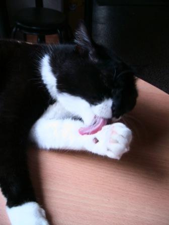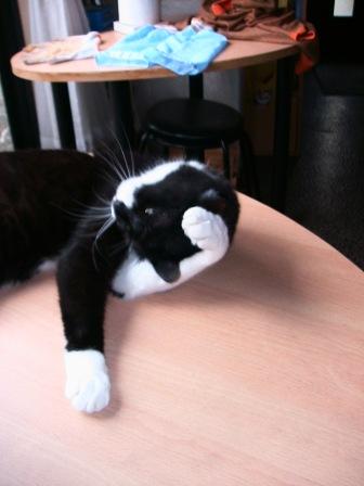 「一」は相変わらずベッド。ワシの目薬注し辛うじて。