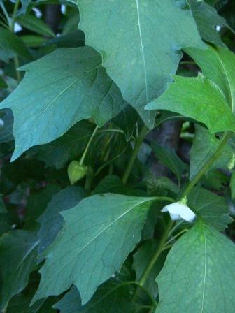 鉢植え「ホホズキ」に小さな小さな実が。まだ1センチない。