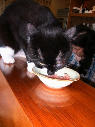 7時「二」も起きてきて食事。