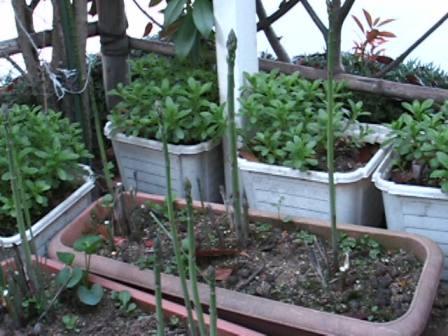 「アスパラ」本日も大・小あるも7本収穫。中。
