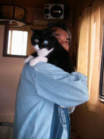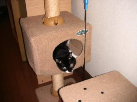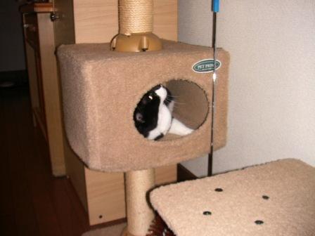 写真・H19年秋「家臣一」が新宿でミユージックテント芝居に出た時に記念に買ってくれた通称「タワー」に入って休んでいる我輩。気が向くと入る。