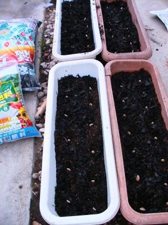 4ヶのプランタンに各20粒づつ。上手く芽が出て苗になったらK氏の畑に植えなおしをお頼みしている。