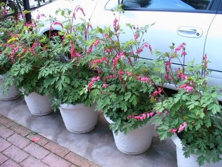 「タイツリソウ」は6~7分咲き、中・小の「鯛」がワンサカ。赤・白12鉢。
