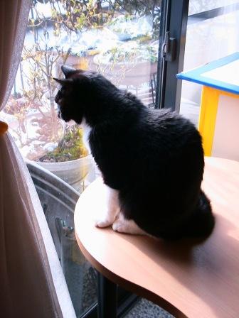 我輩の目覚めは7時半。「家臣一」の部屋前で呼びかける。日課。