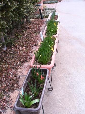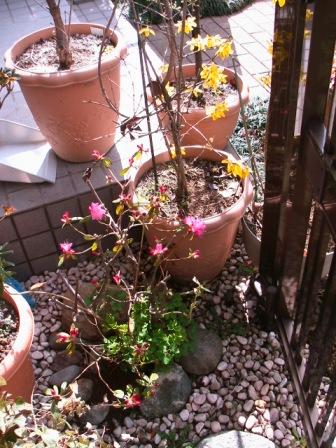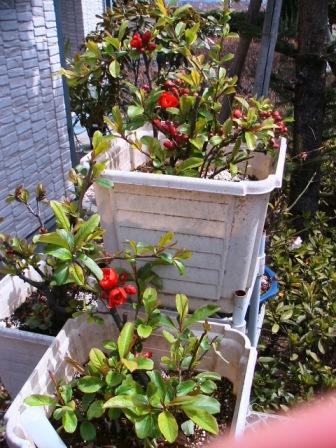 「家臣二」は「芽」が出「蕾」を持ってきた「水仙」「ボケ」等玄関前などの鉢類10ヶ移動。