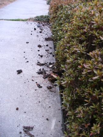 相変わらず鳥共が「ツツジ」の下に入れた「腐葉土」に「ミミズ」でも居るのか穿りまわす。中。