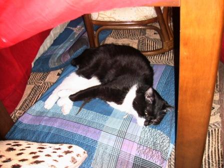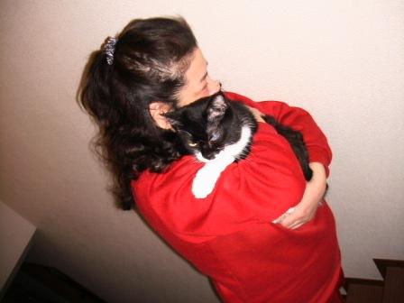 この所寝る時は「家臣二」に抱かれて布団入り。写真右。