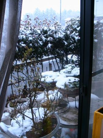 一転今朝は雪景色。車の雪掻き時には黄砂が雪と混ざりギコギコ。
