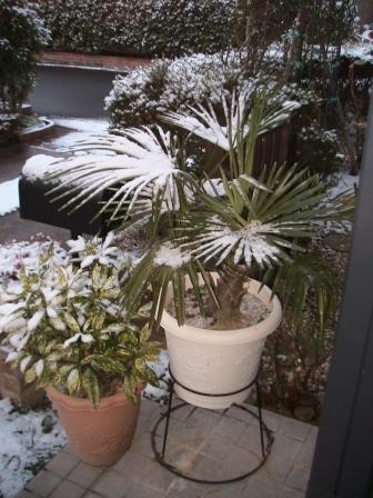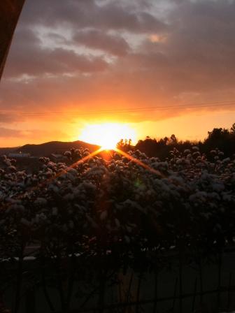 今日は反対。夜半に強風、降雪。朝0度写真右。夕方7度。ヘンテコリンな気温。