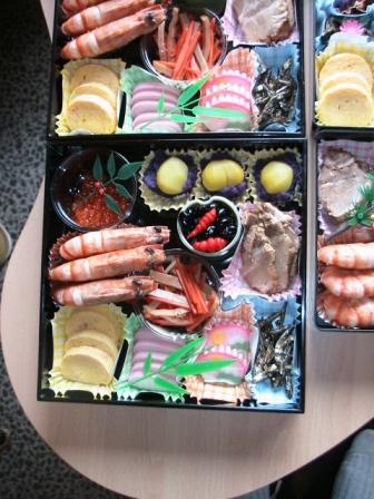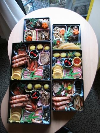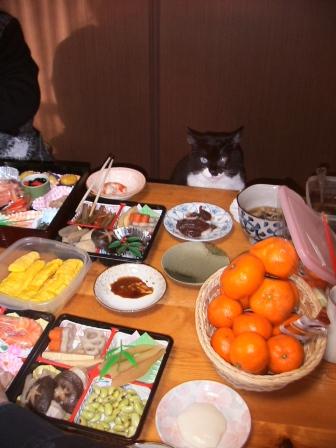 朝食家臣共昨日完成した「オセチ料理」を、我輩は何時もの「アマエビ入りパック」を。