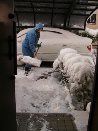 中・20センチは積もった雪を片付ける「家臣一」。