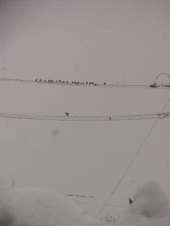 中、100メートル先の電線に20羽の椋鳥。取り残しの林檎なども無し。当家の「冬サンゴ」でも食うより仕方ないじゃろう。ヨシヨシ食いなさい。美味くもないじゃろうが。