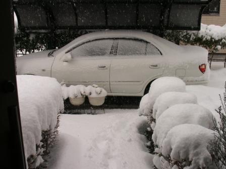 右、カーポートもナンノソノ、雪に埋まっている車。