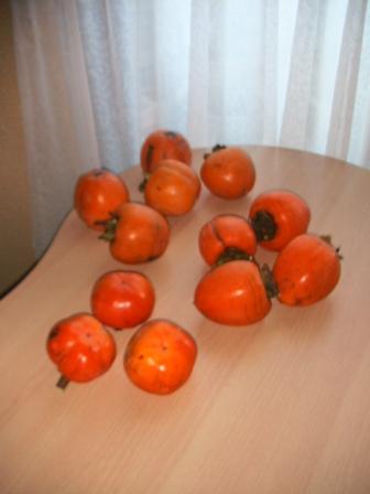 裏庭の3種3本の「柿」の実を12ヶ捥ぐ。