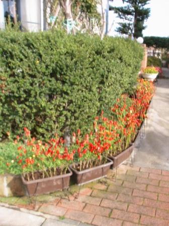 中・葉を落とし赤い実だけになった「七色トウガラシ」無数。