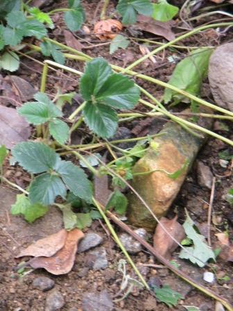 裏庭の落ち葉掃除していたら「イチゴ」が小さな花を。