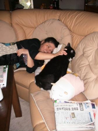 日課後は「人間トン」と「ヌイグルミトン」に挟まれてオヤスミの殿。
