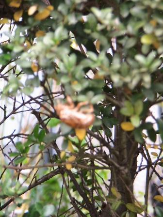 中・以前咲いた同じ木に2度目の蕾の「エンジェルトランペット」。他の木には咲く気配なし。