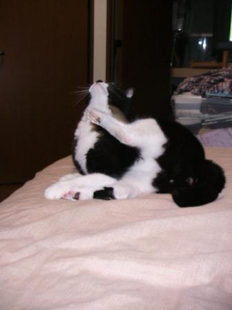 殿様7時遠慮がちに鳴く。2F洗面台の前に毛玉を吐いていた。