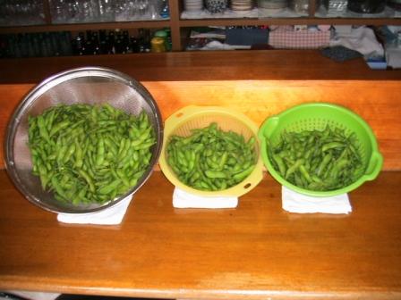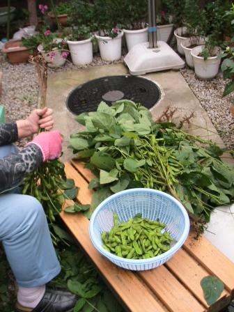 中・大量の「枝豆」をTバアチャンより戴き枝より剥がす。これがひと苦労。義母担当。