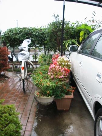 台風の被害、昼現在一寸風が強いが今の所植木・花々に被害無しだが、午後は風が強くなる予報、気を付けよう。