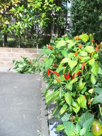 当家は「七色トウガラシ」の鉢が2~3倒れただけ。