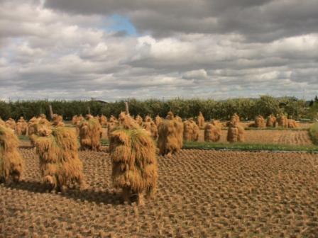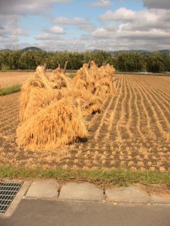 隣の畑に干してある「米」の山が半分ほど倒れた。